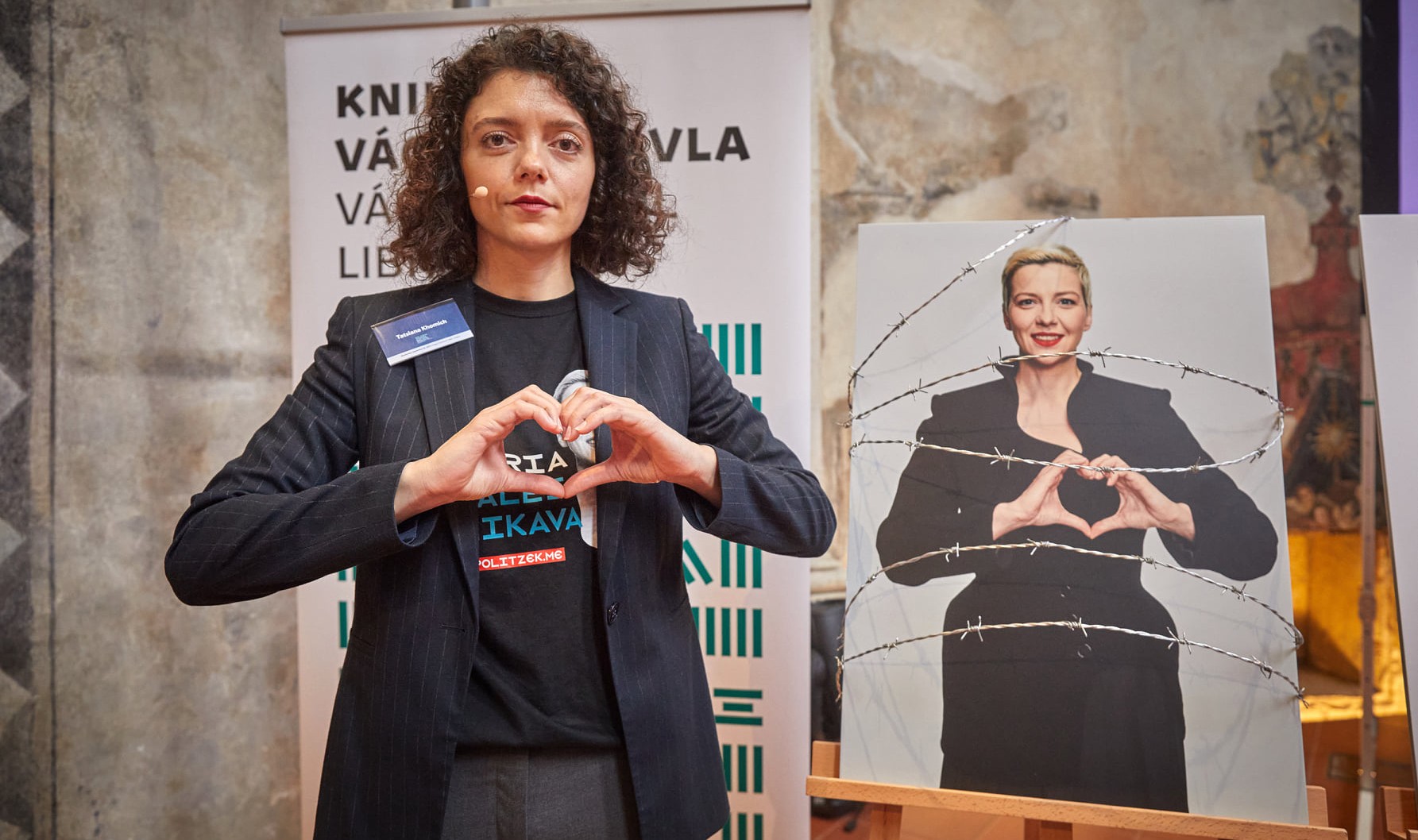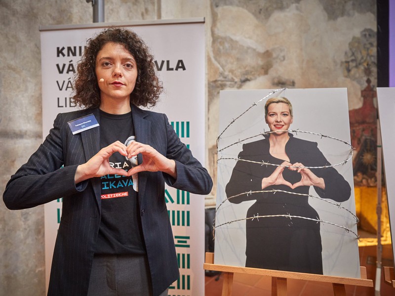 The Vaclav Havel Human Rights Prize is awarded annually by the Parliamentary Assembly of the Council of Europe in cooperation with the Vaclav Havel Library and the Charter 77 Foundation. The prize recognizes ‘outstanding civil society action in defense of human rights in Europe and beyond.’ The award includes a sum of €60,000, a trophy, and a diploma. Maryja’s sister, Tatyana Khomich, participated in the first panel of the Prague Crossroads international conference and accepted the prize on her behalf.